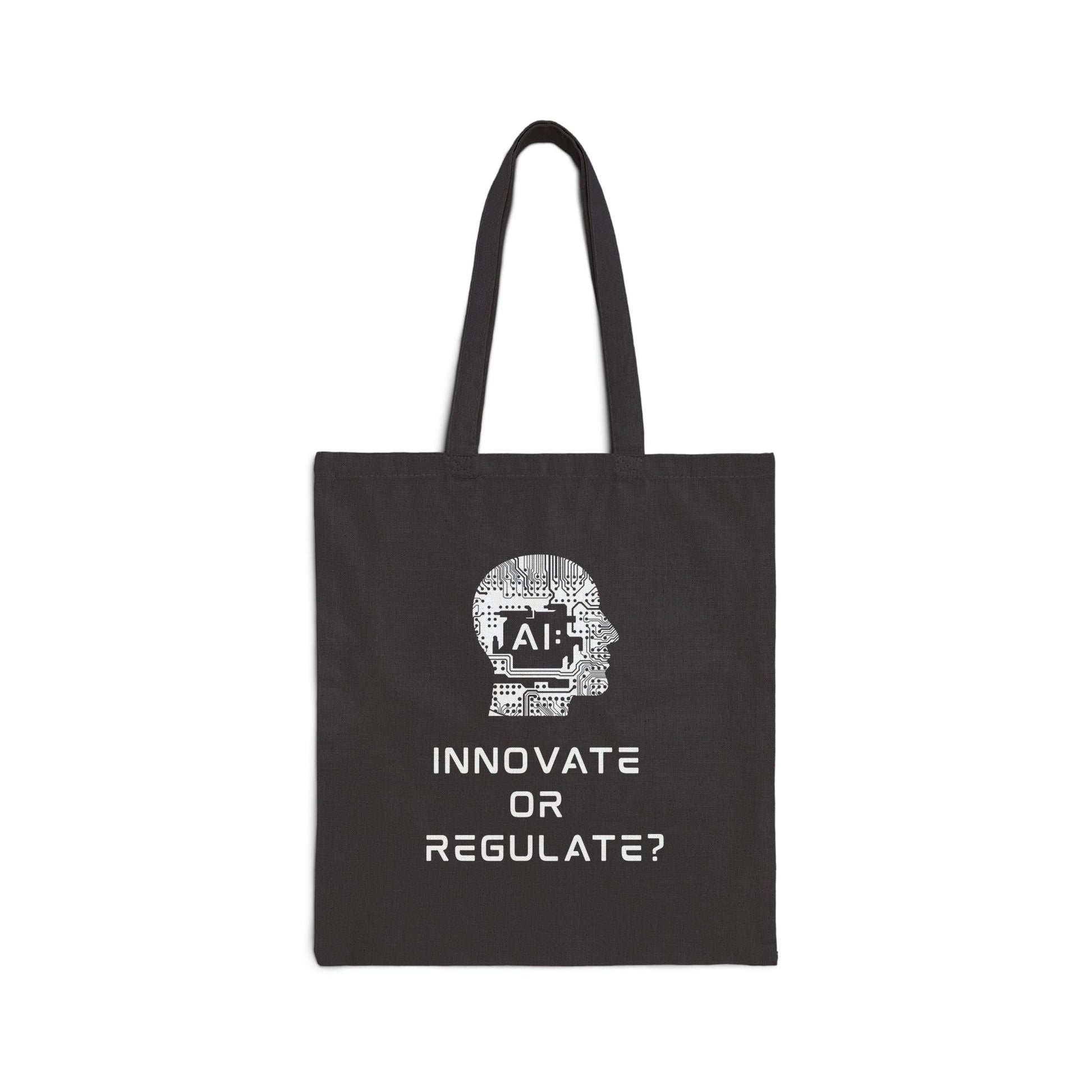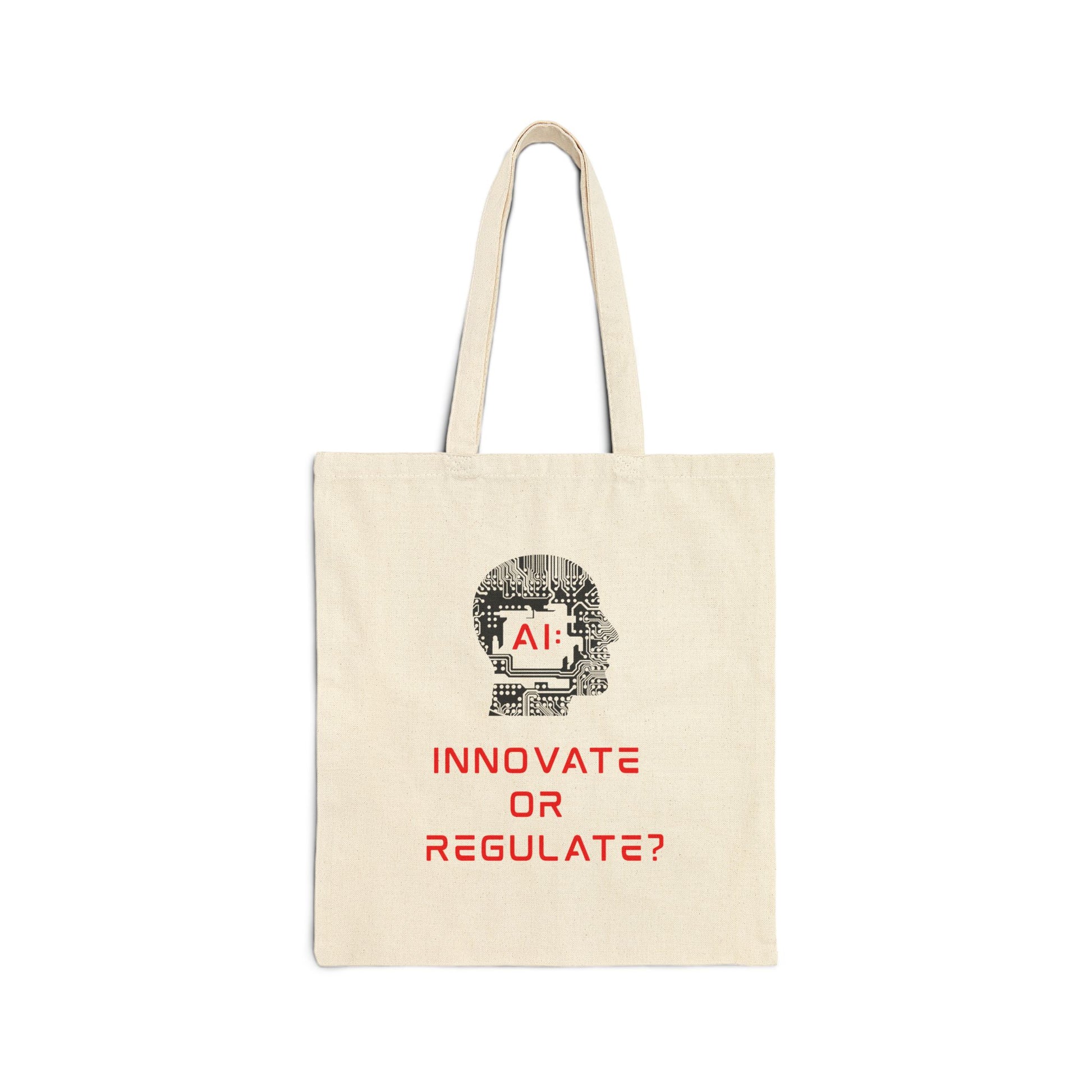 Ideas this bold need something just as smart to carry them in. The brAInstorm Cotton Canvas Tote Bag features a circuit-brain silhouette with bold lettering that dares society to think “AI: Innovate or Regulate?” It’s your new daily carry—functional, stylish, and deeply thought-provoking.