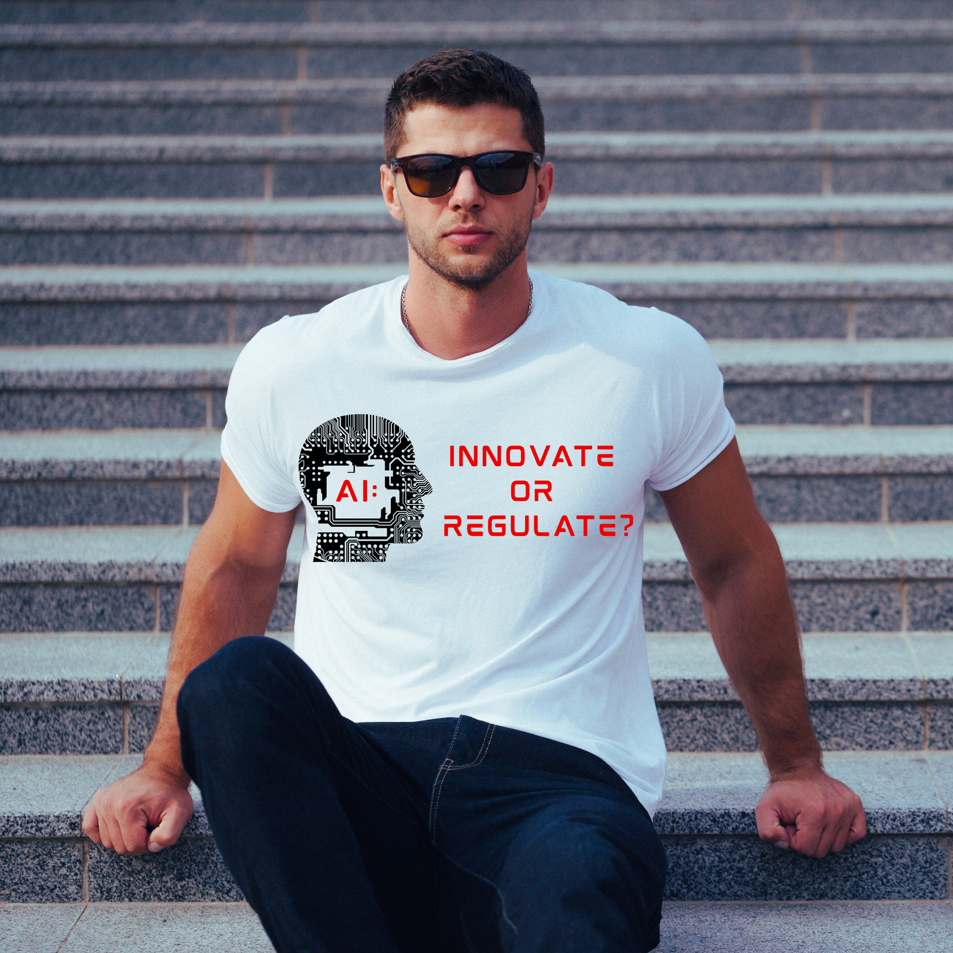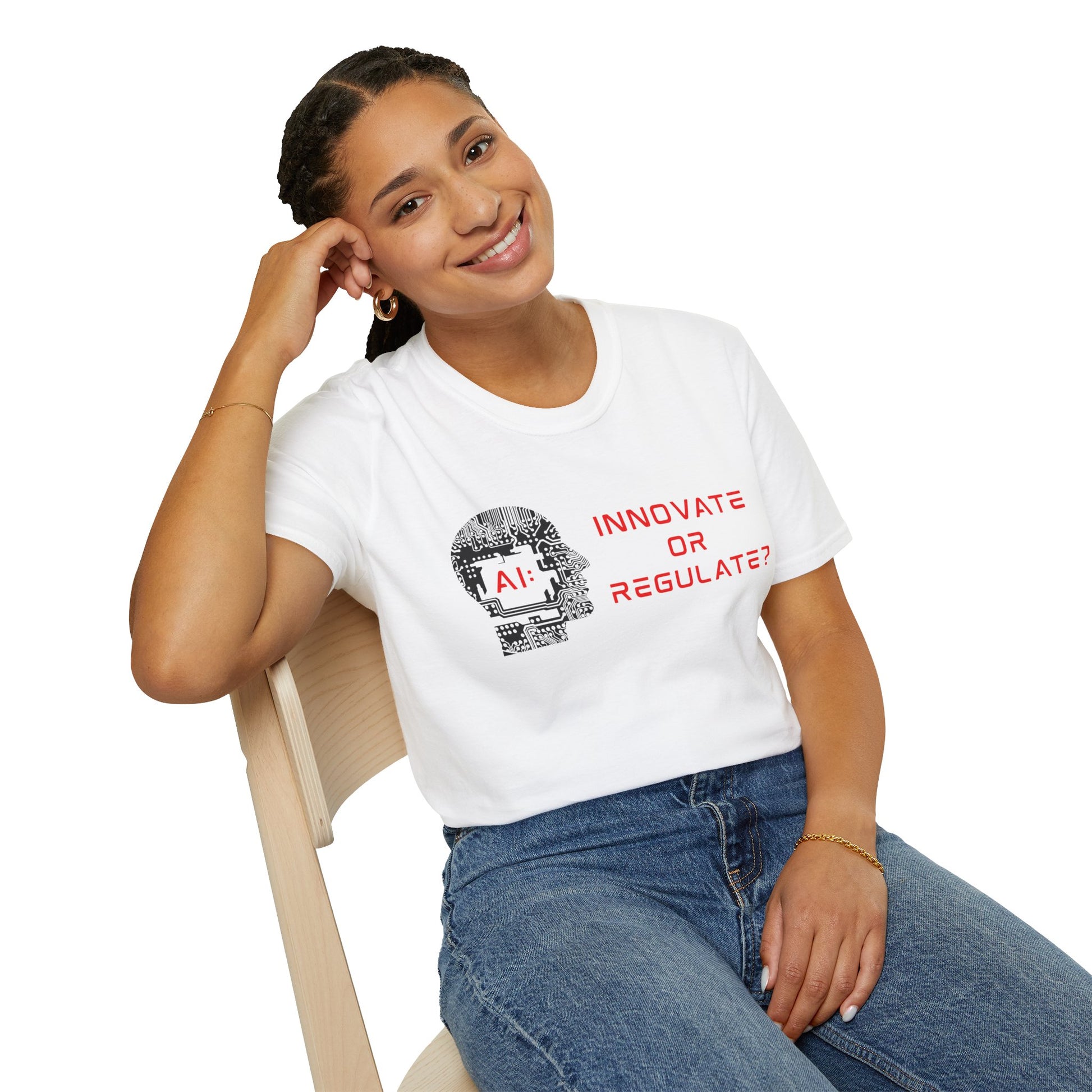 Bold, brainy, and built to provoke. The brAInstorm Premium Soft Blend Tee pairs a stylized circuit-inspired head design posing one of the most powerful questions in modern tech— “AI: Innovate or Regulate?” Made with ultra-soft ring spun cotton, this unisex T-shirt delivers comfort and cognition in equal measure.